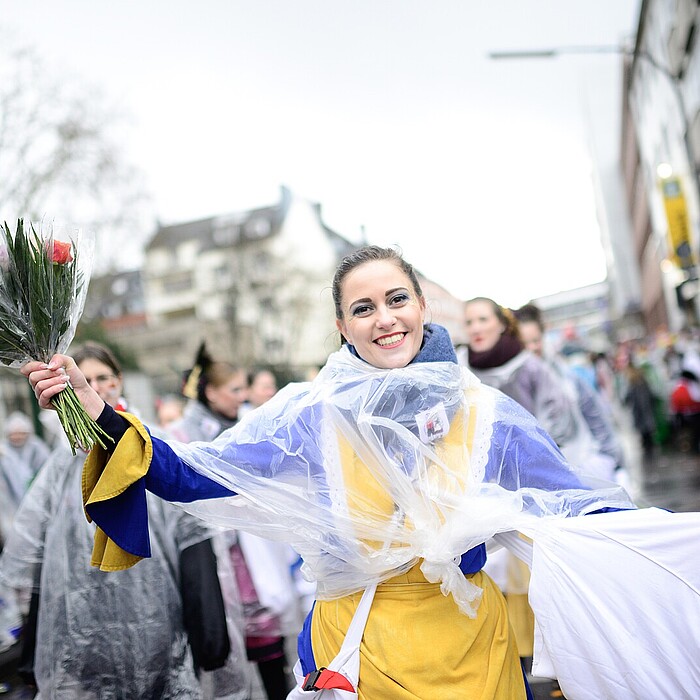 Kamelle, Strüßjer!!! heißt auf hochdeutsch Bonbons und (Blumen-)Sträußchen, aber das versteht im Kölner Karneval wohl niemand. Heute sind Kamelle schon lange keine einfachen Bonbons mehr: Zum einen, weil sich kaum noch jemand danach bückt, zum anderen, weil das Wurfmaterial nicht klebrig und schwer vom Boden abzulösen sein darf. Mit Kamelle werden auch Waffeln, Weingummis, Schokolade, Pralinen und Ähnliches umschrieben. Vorsicht: Fliegende Pralinenschachteln können schon mal schmerzhaft sein! Und wenn Ihnen jemand ein Strüßje überreicht, gibt´s zum Dank gerne auch ein Bützje!