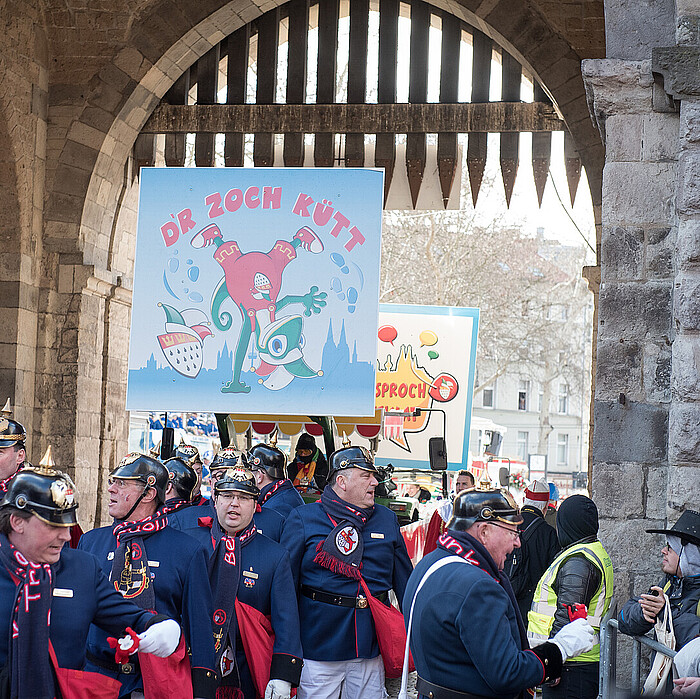 Über Stunden stehen die Jecken schon entlang des Zugwegs, warm eingepackt und ausgestattet mit „Kamellebüggel“, um die Kamelle, Strüßjer und Schokoladentäfelchen aufzuheben. Dann endlich kommt der erste Traktor mit dem wichtigen Hinweisschild. „D’r Zoch kütt!“ Ab jetzt regnet es nur noch Kamelle und es wird viel Freude geschenkt. Der Kölner Rosenmontagszug ist der Umzug der Mitgliedsgesellschaften des Festkomitees:  Traditionskorps, Tanz- und Musikgruppen und Gesellschaften, mit Fußgruppen, Reitern, Kutschen, Fest- oder Prunk- und Bagagewagen ziehen von der Severinstorburg über die Ringe und durch die Altstadt bis zur Mohrenstraße. Ein besonderes Highlight sind die ideenreichen Persiflagewagen, die aktuelle Themen aus Lokal-, Landes- und Weltpolitik aufs Korn nehmen. Tonnenweise werden Kamelle, Strüßjer und anderes Wurfmaterial zu den Zuschauern am Rand geworfen. Die Jecken schunkeln viele Stunden bis zum Höhepunkt ganz am Schluss: dem Kölner Dreigestirn. In Begleitung der EhrenGarde der Stadt Köln kommen Jungfrau und Bauer gemeinsam auf einem Wagen gefahren, ihnen folgen die Prinzen-Garde Köln und der Kölner Prinz Karneval. Wenn anschließend die orangen Kehrmännchen die Straße reinigen, ist der Zoch vorbei.