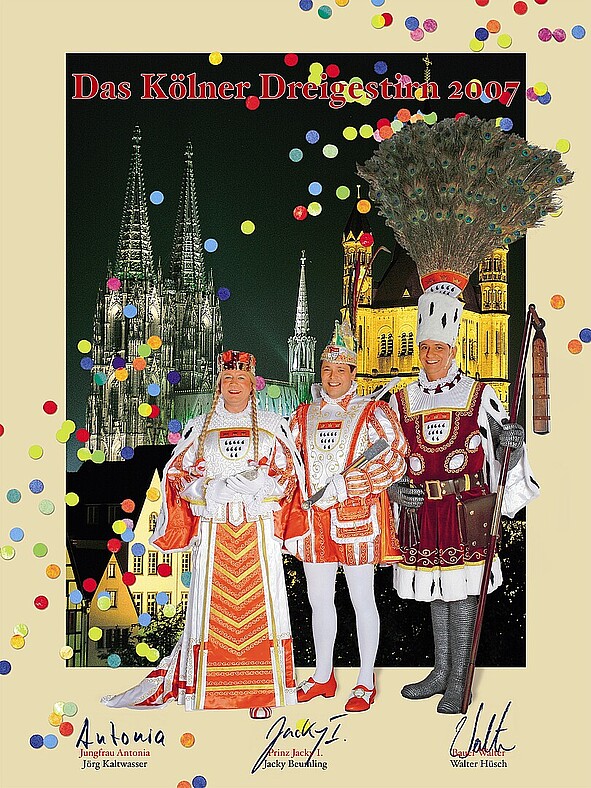 Der Held Carneval nimmt wieder mit der Venetia am Zug teil. Bauer und Jungfrau sind nicht im Zug dabei.
