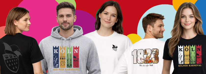 Zusätzlich wird es exklusiv für den Shop gestaltete jecke T-Shirts und einen passenden Hoodie geben. Alle Modelle tragen dazu bei, dass der Kölner Karneval im Alltag ein kleines bisschen sichtbarer wird. Für die nächsten Wochen sind Schritt für Schritt weitere Artikel geplant.