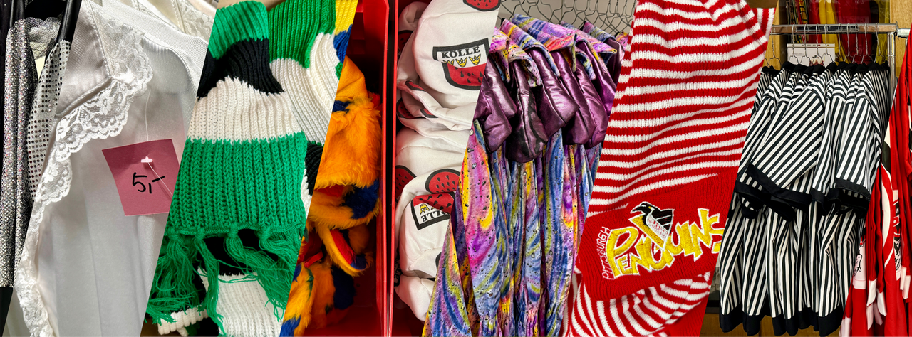 Neben unterschiedlichen Kostümen und Hüten aus der Kleiderkammer des Festkomitees können Orden, Schals und Pins erworben werden. Außerdem gehen Bücher, CDs und Zeitschriften in den Verkauf. Bitte beachten Sie, dass es keine Kinderkostüme geben wird. Das Angebot ist sehr vielfältig und bietet interessierten Gästen die Möglichkeit, einen fehlenden Mottoschal oder das passende Kostüm für die Sessionseröffnung am Montag zu ergattern.
