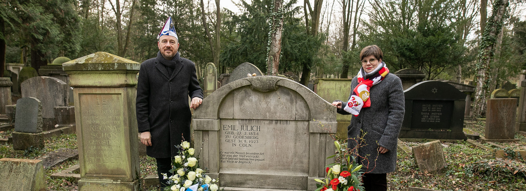 Es war ein ernster Termin in der laufenden Karnevalssession – und ein Treffen, das allen Beteiligten sehr wichtig war. Anlässlich des Internationalen Tages des Gedenkens an die Opfer des Holocausts trafen sich Vertreter der Kölner Karnevals auf dem Jüdischen Friedhof in Köln-Bocklemünd, um an das Schicksal jüdischer Karnevalisten zu erinnern. Sie wurden in Köln in der Zeit des Nationalsozialismus ausgegrenzt, denunziert und verfolgt. Auch die Kölner Juden erlebten die ganze Brutalität der Naziregimes, das sie aus ihrer Heimat vertrieb, ihrer Freiheit und ihres Lebens beraubte. Jülichs Grab – er ist der Schöpfer des Evergreens „Ov krüzz oder quer“, der in diesem Jahr das Motto der Karnevalssession stellt – wurde anlässlich des Gedenktages instandgesetzt.