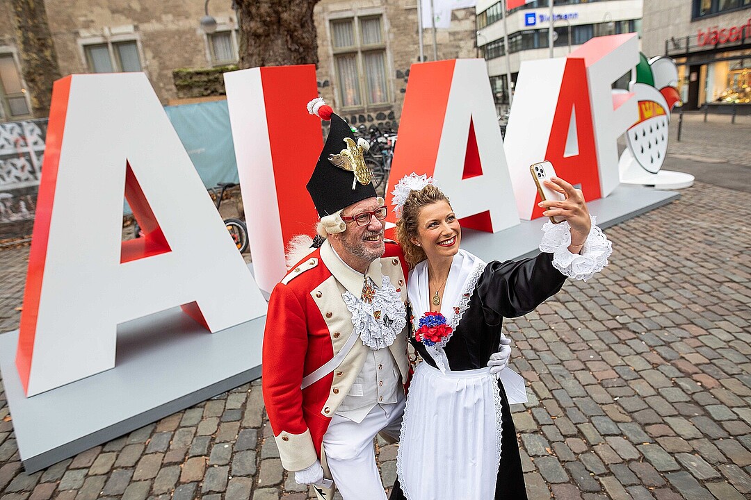 Nur fünf Buchstaben genügen, um eine Stadt und ein ganzes Lebensgefühl zu beschreiben: „Alaaf“ ist als traditioneller Kölner Ausruf weltbekannt und ein echtes Markenzeichen rheinischer Lebensfreude. Das Festkomitee des Kölner Karnevals lässt dieses Wort nun auch ganz real und „fassbar“ zum Markenzeichen werden. Denn zum 200. Geburtstag des organisierten Karnevals hat der Dachverband der Kölner Karnevalisten das Wort als Schriftzug im XXL-Format umsetzen lassen, der in den nächsten Monaten an wechselnden markanten Orten der Stadt als Foto- und Selfi-Punkt aufgestellt wird. Die über zwei Meter hohen Buchstaben sind pünktlich zur Proklamation des Kölner Dreigestirns vor dem Kölner Gürzenich zu sehen. Dort enthüllte Festkomitee-Präsident Christoph Kuckelkorn den Schriftzug am Donnerstag (5. Januar 2023): „Wir wollen im Jubiläumsjahr alle Kölnerinnen und Kölner und natürlich alle Besucher der Stadt an der Freude über den runden Geburtstag des organisierten Karnevals teilhaben lassen. Das herzliche ‚Alaaf‘ findet so den Weg in die Handys und in die Herzen aller, die sich mit Köln verbunden fühlen.”