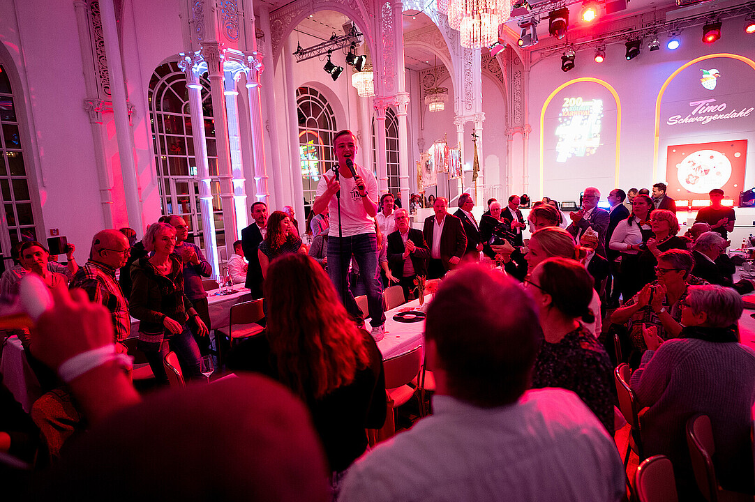 Der Musiker Timo Schwarzendahl ist bereits bei der Akademie und beim Stammtisch vertreten und sieht für sich vor allem einen Mehrwert durch die unterschiedlichen Auftrittsmöglichkeiten: „Ich habe mit dem Vorstellabend vom Stammtisch eine große Bühne mit viel Reichweite und mit den Try-Outs der Akademie eine tolle Gelegenheit, mich auch unter dem Jahr auszuprobieren. Die Mischung ist für mich perfekt, und die Teilnahme am Rosenmontagszug 2023 war sicherlich mein absolutes Auftrittshighlight.“