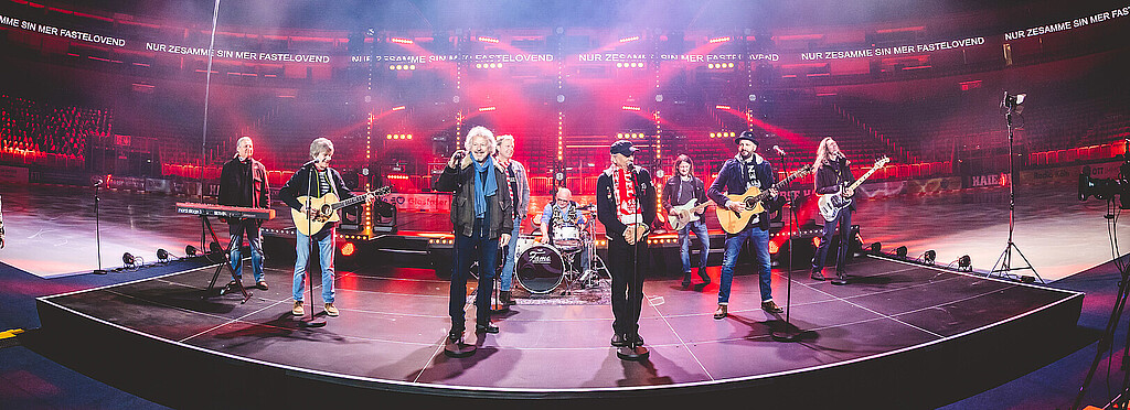 Das Programm wurde auf der Website der Aktion, auf MagentaTV.de und beim Magenta TV Sender #DABEI übertragen und heizte den Zuschauern von der ersten Minute an ein. Gleich zu Beginn hatten die Bläck Fööss einen Gast mitgebracht, der noch nie im Rahmen einer Karnevalsveranstaltung aufgetreten war: Wolfgang Niedecken. Für den guten Zweck machte der Rockstar aber gerne eine Ausnahme: „Ich werde sicher nicht häufiger im Karneval auftreten, aber ich habe auch keine Berührungsängste. Seit 1981, wo ich ‚Nit für Kooche’ geschrieben habe, hat sich im kölschen Karneval unheimlich viel verändert. Wenn ich dann mit den Bläck Fööss ‚Drink doch eine met’ singen darf, ist das eine Ehre für mich – vor allem weil der Song eigentlich der Auslöser war, warum ich auf Kölsch singe. Ich finde, Köln kann sich mit der Spendensumme echt sehen lassen. Es geht darum, Menschen, die finanziell echt unter Druck sind zu unterstützen. Und dann sind die Kölschen da. Großartig!” Ähnlich begeistert zeigte sich Henning Krautmacher: „Der Auftritt in der Lanxess Arena war für mich ein echtes Highlight der Session. Wir haben natürlich jetzt schon ein paar Mal ohne Publikum gespielt, aber der gute Zweck, der hier dahinter steckt, macht für mich den Unterschied. Es wird eine tolle Summe zusammenkommen für die Menschen, die uns Künstler auf der Bühne glänzen lassen, aber die man sonst nicht so wahrnimmt, weil sie hinter den Kulissen arbeiten. Für mich ist es eine Ehre, hier dabei sein zu dürfen.” Tatsächlich lag die Spendensumme zum Ende des Live-Streams aus der Lanxess Arena bei über 800.000 Euro. Mit dazu beitragen hatte eine ganze Reihe von größeren Spenden von Karnevalsgesellschaften und Partnern der Aktion. Aber auch die Charity-SMS 44844, wo man mit „Karneval5” oder „Karneval10” fünf oder zehn Euro spenden kann, war ein voller Erfolg. Über www.koelsch-akademie.de/nitallein sind Spenden auch nach Weiberfastnacht noch möglich. Wer den Spendenmarathon noch einmal sehen möchte, kann dazu auf MagentaTV.de am Donnerstag ab 19:00 Uhr den Stream erneut oder ab Freitag ein Best-of sehen.
