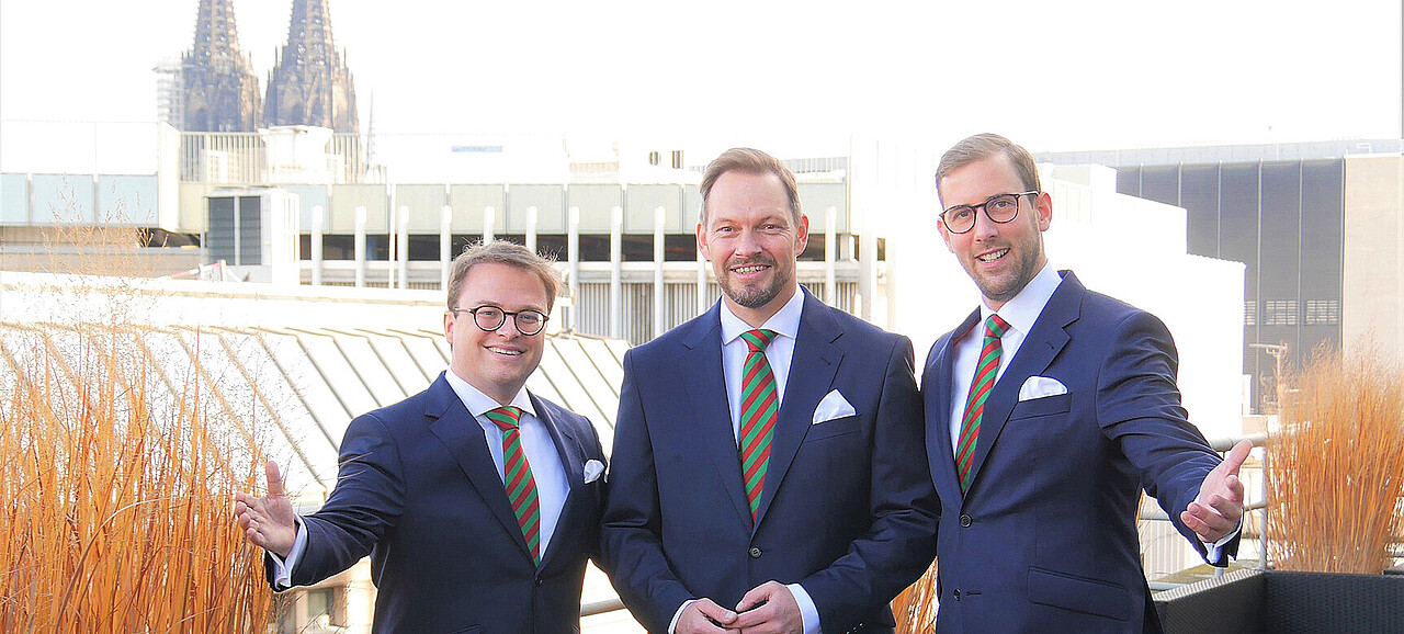 Mitten in der Stadt zuhause sind die Drei, die in der kommenden Session das Kölner Dreigestirn stellen werden: Der designierte Prinz Sven I., Sven Oleff, der designierte Bauer Gereon, Gereon Glasemacher, und die designierte Jungfrau Gerdemie, Dr. Björn Braun, gehören zum Traditionskorps der Altstädter Köln 1922 eV. Den drei Freunden steht eine besondere Premiere bevor: Erstmals in der Geschichte des Kölner Karnevals wird ein Trifolium zwei Sessionen lang das Amt ausführen. „Das Festkomitee hat sich aufgrund der durch die anhaltende Pandemie nach wie vor wenig planbaren Session 2021 dazu entschieden, dieses Dreigestirn zwei Jahre regieren zu lassen“, so Christoph Kuckelkorn, Präsident des Festkomitees Kölner Karneval. „Das Amt verlangt seinen Trägern viel ab und gerade die kommende Session wird in vielerlei Hinsicht eine besondere Herausforderung. Wir sind sehr froh, ein Dreigestirn gefunden zu haben, das mit viel Herzblut und noch mehr Fastelovendserfahrung diese Aufgabe meistern wird.“
