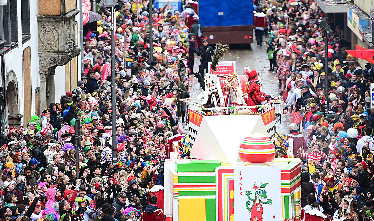 Einen rundum gelungenen Rosenmontagszug erlebten Hunderttausende von Jecken am Montag in Köln. Die Premiere des neuen Zugleiters Holger Kirsch war beeindruckend: Passend zum aktuellen Sessionsmotto „Et Hätz schleiht em Veedel” hatte Kirsch mit seinem Team alle Persiflagewagen passend zu jeweils einer Liedzeile des Bläck-Fööss-Klassikers „In unserem Veedel” gestaltet. Das kam beim Publikum hervorragend an – zumal die Band zu ihrem 50. Jubiläum ebenfalls mit dabei war. Insgesamt waren es 12.000 Teilnehmer, 26 Persiflage- und 61 Festwagen und rund 300 Tonnen Kamelle und Pralinen, die für einen überaus bunten und vielfältigen Rosenmontagszug sorgten.